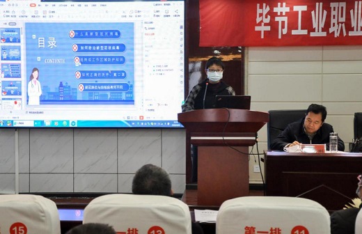 副院長黃河就《畢節(jié)工業(yè)職業(yè)技術學院2020年開學工作方案》《畢節(jié)工業(yè)職業(yè)技術學院新冠疫情防控工作方案》《畢節(jié)工業(yè)職業(yè)技術學院新冠疫情防控應急預案》進行解讀,要求加強組織管理和統(tǒng)籌調(diào)度,建立健全上下一體聯(lián)動機制,明確職責分工,確保新學期開學疫情防控策略和應急處置措施扎實有效實施。