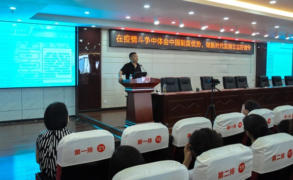 接下來,院長邱國援從中國人的團結、黨中央的堅強領導、全國一盤棋的動員機制、新時代青年要愛國立志4個方面進行了闡述。他指出,在疫情嚴峻的時刻,黨的堅強領導給了全國人民以定力和信心。久經考驗的中國共產黨曾團結帶領廣大人民一次次戰(zhàn)勝各種艱難險阻,也一定能夠領導廣大人民取得疫情防控阻擊戰(zhàn)的勝利。中國特色社會主義制度具有堅持全國一盤棋,調動各方面積極性,集中力量辦大事的顯著優(yōu)勢。