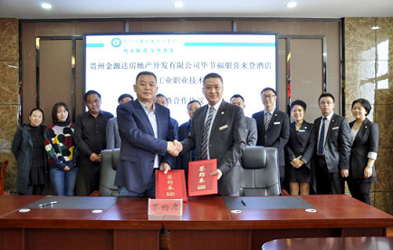 5月25日,畢節(jié)工業(yè)職業(yè)技術(shù)學(xué)院與畢節(jié)福朋喜來登酒店校企合作戰(zhàn)略協(xié)議簽訂儀式在學(xué)院同心樓三樓會議室舉行。學(xué)院黨委書記李涌、院長邱國援、副院長吳家文、招生就業(yè)處負責人孟天利、社會服務(wù)系負責人楊昌林及部分教師,畢節(jié)福朋喜來登酒店總經(jīng)理曾利平、房務(wù)經(jīng)理邵鍵、餐飲副總監(jiān)蔡林、行政管家項周金、銷售副總監(jiān)姚莉、人力資源副經(jīng)理李瓊一同出席本次簽約儀式。