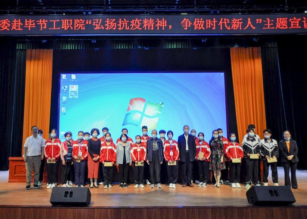 6月20日下午,在充分做好疫情防控工作的前提下,市關(guān)工委主任周長琦,副主任吳學(xué)香、杜娟、唐華清、曾玉琴、鐘華等一行到我院進(jìn)行“弘揚(yáng)抗疫精神,爭做時代新人”宣講。我院黨委副書記付善華、副院長黃文碧,學(xué)生代表430人參加了此次宣講活動。