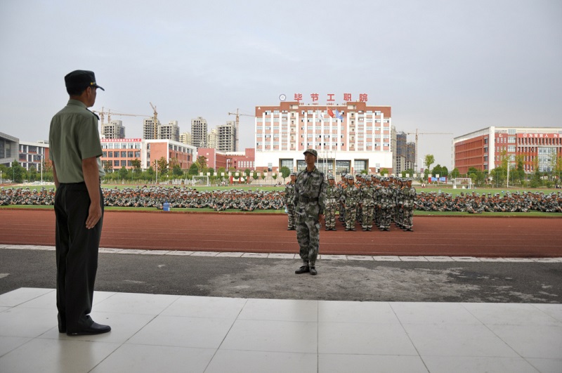 8月28日上午,畢節(jié)工業(yè)職業(yè)技術(shù)學(xué)院2020級中職新生排著整齊的隊伍在學(xué)院田徑場等待著軍訓(xùn)考核。