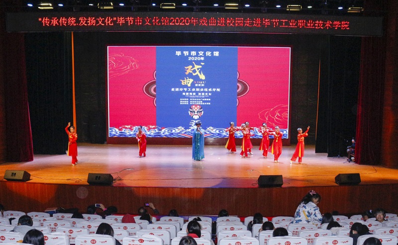戲曲,是中國傳統(tǒng)文化的瑰寶,是一種無形的歷史文化遺產(chǎn)。為弘揚社會主義核心價值觀,讓學(xué)生更多地了解中華優(yōu)秀戲曲文化,傳承中華文明,提高學(xué)生的道德素養(yǎng),激發(fā)學(xué)生熱愛祖國文化、熱愛家鄉(xiāng)的美好情感。我院于2020年9月27日與畢節(jié)市文化廣電旅游局、畢節(jié)市文化館聯(lián)合舉辦“傳承傳統(tǒng)·發(fā)揚文化”戲曲進校園活動,為學(xué)校師生帶來戲曲傳統(tǒng)文化美的享受。