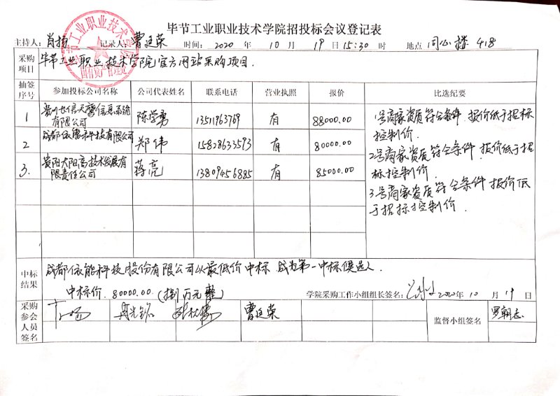 畢節(jié)工業(yè)職業(yè)技術(shù)學(xué)院官方網(wǎng)站中標公告