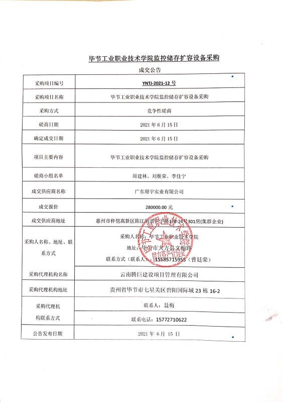 畢節(jié)工業(yè)職業(yè)技術(shù)學(xué)院監(jiān)控儲(chǔ)存擴(kuò)容設(shè)備采購(gòu)成交公告
