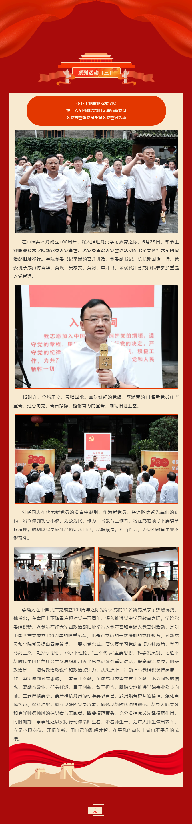 慶祝建黨100周年系列活動(三) | 畢節(jié)工業(yè)職業(yè)技術學院在紅六軍團政治部舊址舉行新黨員入黨宣誓暨黨員重溫入黨誓詞活動