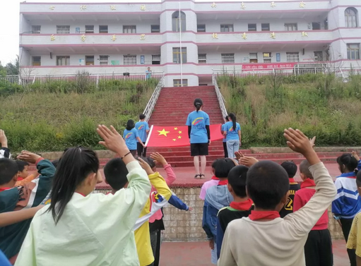 ▲志愿者和云峰小學(xué)同學(xué)一起進行升旗儀式