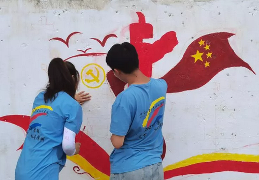 在為期10天的“三下鄉(xiāng)”社會實踐中,實踐隊員們把黨史學(xué)習(xí)教育帶到了田間地頭家中墻上。實踐隊員們走進田間地頭,和當?shù)剜l(xiāng)親們一起學(xué)習(xí)交流黨的發(fā)展歷程,到家中聆聽當?shù)亍罢稀焙屯宋槔媳?、老黨員講述他們的親身經(jīng)歷和黨的光輝歷程并宣傳黨的政策,與鄉(xiāng)親們一起溝通鄉(xiāng)村振興的意見和建議。同時,實踐隊員們還將黨的光輝歷史和黨的政策、生態(tài)文明建設(shè)、鄉(xiāng)村振興、惠農(nóng)政策等用墻繪的方式畫在墻上?!皩嵺`隊員們通過這種樸實、接地氣、通俗易懂的方式將黨史學(xué)習(xí)教育和黨的政策送到了田間地頭、村民家中,打破了傳統(tǒng)的宣講模式,增強了廣大村民振興鄉(xiāng)村的信心?!笔敬羼v村書記明正興說。