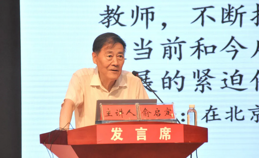 ▲國(guó)家職業(yè)教育研究院教授、北京師范大學(xué)教授俞啟定作“關(guān)于‘雙師型’教師的定位與培養(yǎng)問題探討”專題講座