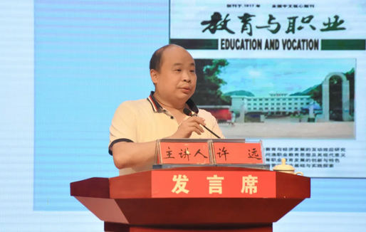 ▲人力資源和社會(huì)保障部職業(yè)技能鑒定中心研究員許遠(yuǎn)作“新時(shí)代職業(yè)教育和技能人才培養(yǎng)熱點(diǎn)問題”專題講座