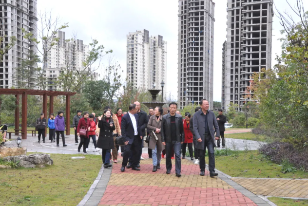 ▲學院領(lǐng)導陪同與會老同志們步行參觀拓海學院