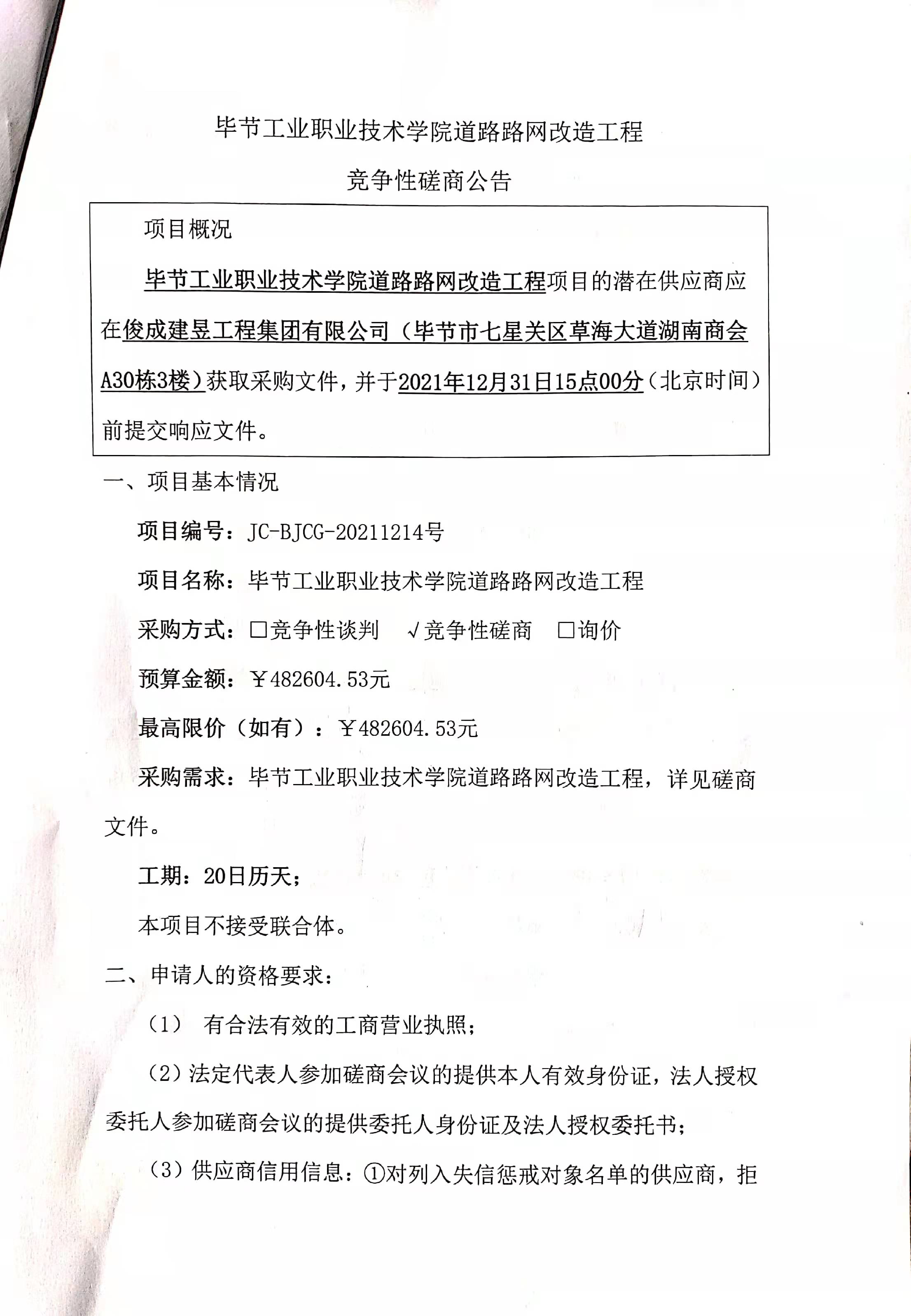 畢節(jié)工業(yè)職業(yè)技術(shù)學院道路路網(wǎng)改造工程競爭性磋商公告