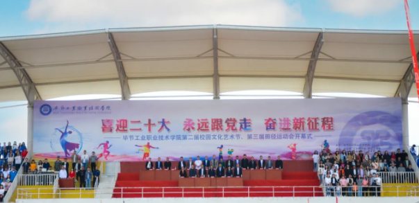 黨委委員、副院長黃瑛致開幕辭,她代表學(xué)校黨委對(duì)運(yùn)動(dòng)會(huì)、藝術(shù)節(jié)開幕表示祝賀,向辛勤付出的全體運(yùn)動(dòng)員、裁判員及工作人員致以誠摯的感謝。隨后,學(xué)院黨委副書記、院長邱國援宣布畢節(jié)工業(yè)職業(yè)技術(shù)學(xué)院第二屆校園文化藝術(shù)節(jié)、第三屆田徑運(yùn)動(dòng)會(huì)開幕!