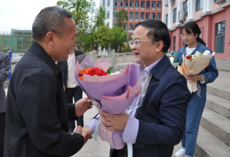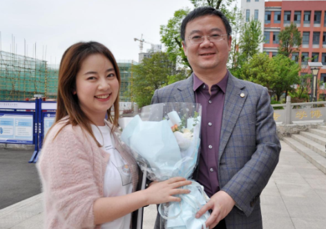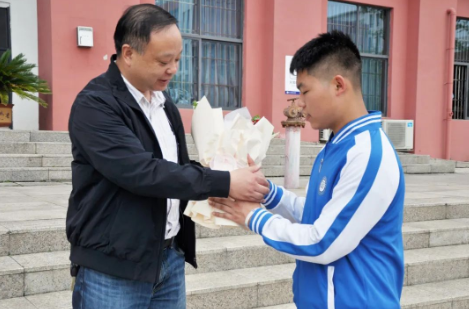 (院領導為獲獎師生獻花)