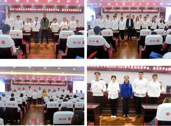 儀式上,學(xué)生資助管理中心負責(zé)人李連成介紹了國家獎學(xué)金、勵志獎學(xué)金的申請流程及評選標(biāo)準(zhǔn);學(xué)生工作處負責(zé)人胡永祚宣讀了《畢節(jié)工業(yè)職業(yè)技術(shù)學(xué)院關(guān)于表彰2020——2021學(xué)年國家獎學(xué)金、勵志獎學(xué)金獲得者的決定》。本學(xué)年我院共有7名學(xué)生榮獲國家獎學(xué)金,72名學(xué)生榮獲國家勵志獎學(xué)金。