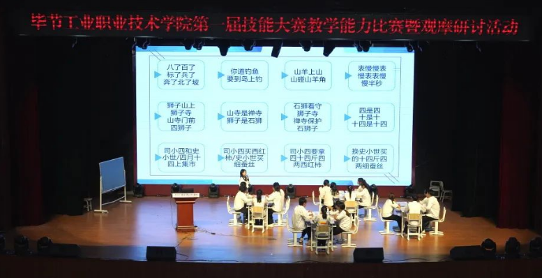 2022年6月29日,畢節(jié)工業(yè)職業(yè)技術(shù)學(xué)院第一屆技能大賽教學(xué)能力比賽在會(huì)議中心圓滿舉行。此次競(jìng)賽以提升教師的教學(xué)能力為主旨,力求讓我院教師進(jìn)一步樹(shù)立先進(jìn)教育教學(xué)理念,應(yīng)用現(xiàn)代教學(xué)方法,堅(jiān)持知識(shí)傳授、能力培養(yǎng)與價(jià)值教育相結(jié)合,助推學(xué)院高質(zhì)量?jī)?nèi)涵式發(fā)展。