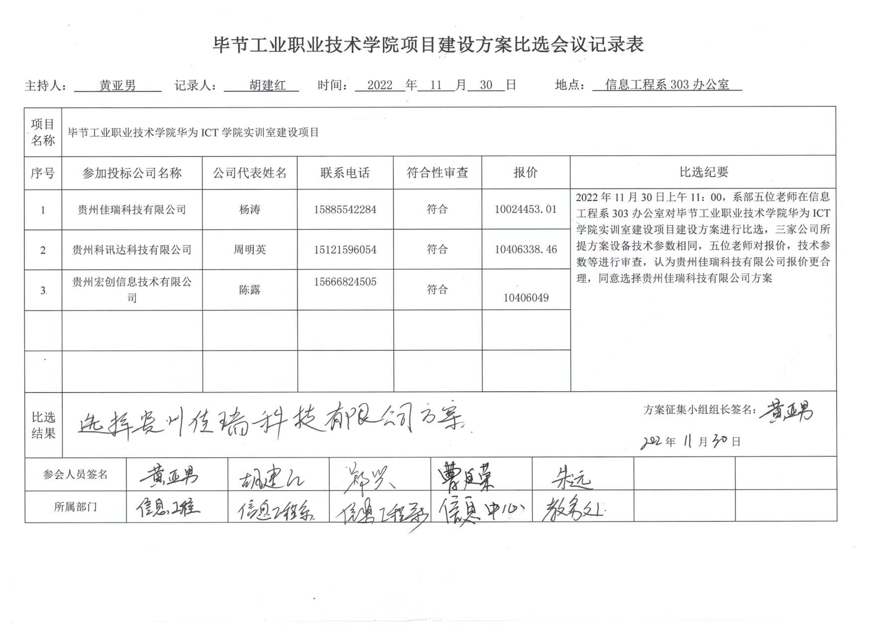 畢節(jié)工業(yè)職業(yè)技術(shù)學(xué)院華為ICT學(xué)院實(shí)訓(xùn)室建設(shè)項(xiàng)目比選結(jié)果公示