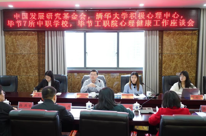 4月24日,中國發(fā)展研究基金會團隊、清華大學(xué)積極心理學(xué)研究中心團隊赴學(xué)院指導(dǎo)交流。中國發(fā)展研究基金會兒童發(fā)展研究院項目副主任皇甫靜,清華大學(xué)積極心理學(xué)研究中心副主任張鵬,學(xué)院黨委委員、副院長黃瑛,心理健康教育與咨詢中心負責(zé)人周靜及畢節(jié)7所中職學(xué)校心理教師近30人參加交流活動。