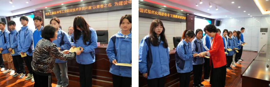 關工委領導一行實地考察調(diào)研了校園環(huán)境、文化建設、校企合作實訓基地、心理健康教育與咨詢中心并詳細了解了學院辦學情況,對學院現(xiàn)階段各項工作取得的成效給予了充分肯定。 宣講會上,潘軍偉以“以青春之名,為建設中國式現(xiàn)代化砥礪奮斗”為題,從“什么是中國式現(xiàn)代化”、“中國式現(xiàn)代化理論走過的歷程”、“中國式現(xiàn)代化關鍵是什么”、“如何推進中國式現(xiàn)代化”、“以青春之名,為建設中國式現(xiàn)代化砥礪奮斗”五個方面,帶領工職院師生從歷史發(fā)展脈絡的角度出發(fā),全面回顧了近代以來中華民族艱辛的探索和復興之路。深刻闡釋了中國式現(xiàn)代化是中國共產(chǎn)黨和中國人民長期實踐探索的成果,是對中國特色社會主義道路的繼承與發(fā)展,拓展了發(fā)展中國家走向現(xiàn)代化的途徑,指明了構建人類命運共同體發(fā)展方向。講座具有很強的理論性、針對性和指導性,對與會師生學習理解中國式現(xiàn)代化,進一步堅定政治立場、樹立正確的人生觀價值觀、勇?lián)褡鍙团d重任具有深刻的啟發(fā)和引導意義。 潘軍偉強調(diào),中國式現(xiàn)代化為廣大青年提供了廣闊的舞臺,新時代技能青年要堅持黨的領導,牢記習近平總書記的殷切囑托,傳承“五四”精神,既要有遠大的理想和抱負,又要有腳踏實地的實干精神。要認真學習專業(yè)技能,練就過硬的本領、強健的體魄,積極參加優(yōu)秀美育、勞動教育活動,以時不我待、強國有我、只爭朝夕的緊迫感,為建設社會主義現(xiàn)代化強國砥礪奮斗,書寫精彩人生。 講座結束后,市關工委領導周長琦、杜娟為學院20名家庭貧困學生發(fā)放慰問金,鼓勵他們努力學習,早日成為黨和國家需要的技能型人才。
