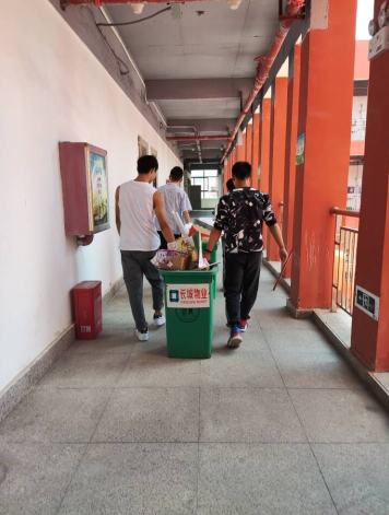 2021年9月2日中午,第三教學(xué)黨支部的黨員教師做好帶頭作用,親自清掃各樓層垃圾滿溢的垃圾桶,和學(xué)生一起到垃圾回收點倒垃圾。