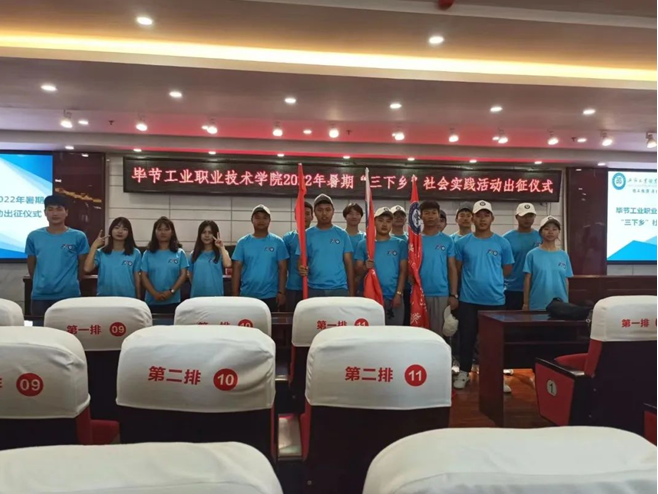 2022年7月4日,畢節(jié)工業(yè)職業(yè)技術(shù)學院土木工程系“三下鄉(xiāng)”出征儀式在同心大樓9樓會議室舉行。儀式由學院黨委副書記、院長邱國援為實踐隊授旗,黨委委員、副院長黃文碧宣布出征,黨委委員、宣傳部部長余斌發(fā)表講話。土木工程系老師、領(lǐng)隊老師、實踐隊學生參加此次出征儀式。