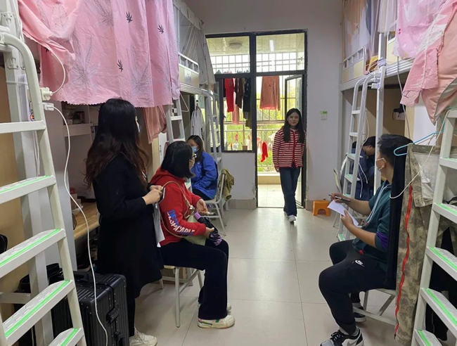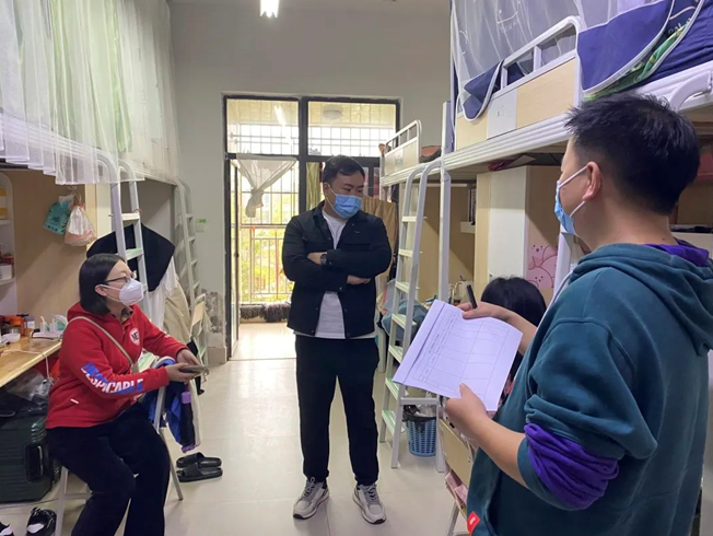 我系聶濤、史曉嵐、何應垚、蒙光國等多名老師第一時間趕赴學院防控一線,組織開展疫情靜默期間各項工作,并帶領我系志愿者同學用心用情服務學生、關愛學生。在靜默期間走訪學生寢室,關注重點特殊人群、排查心理健康異常情況等,并做好相應記錄。