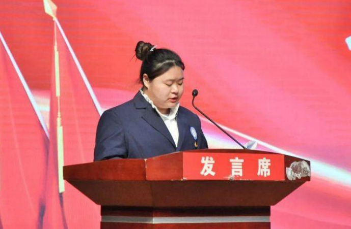 (學生代表大會總監(jiān)票人譚悅宣布新一屆學生會主席團成員、學生會委員會委員名單)