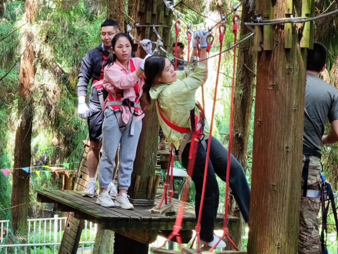 活動項(xiàng)目豐富多樣,現(xiàn)場氣氛歡快,活動前,工作人員向大家詳細(xì)介紹了規(guī)則和項(xiàng)目內(nèi)容,老師們共同商討研究,信心滿滿、蓄勢待發(fā)。破冰訓(xùn)練、彩虹滑道、叢林穿越等一系列充滿刺激挑戰(zhàn)的團(tuán)隊(duì)游戲和互動,使得教師們在愉悅的情緒下彼此更加親近。