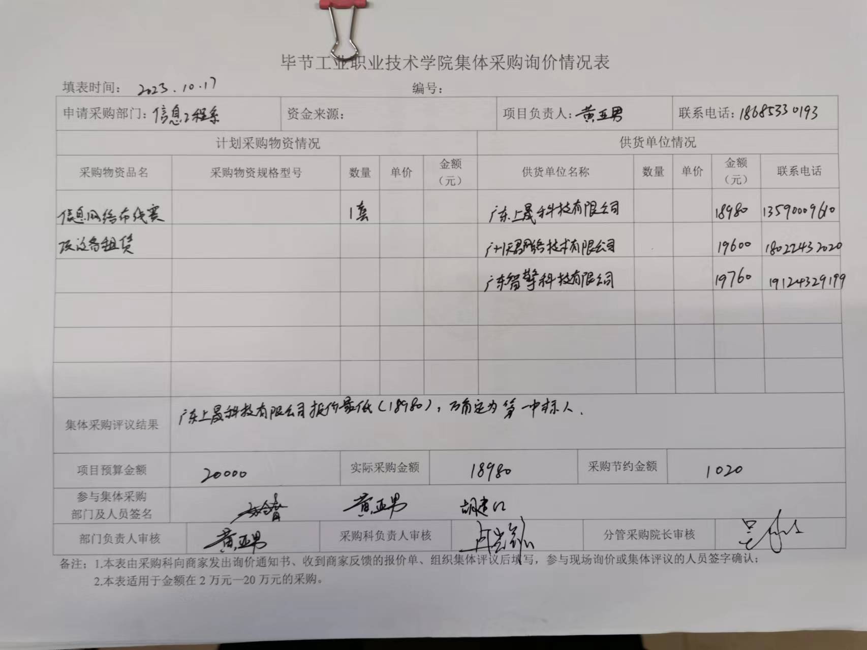 畢節(jié)市第二屆職業(yè)技能大賽信息工程系承辦賽項耗材采購詢價結果公示