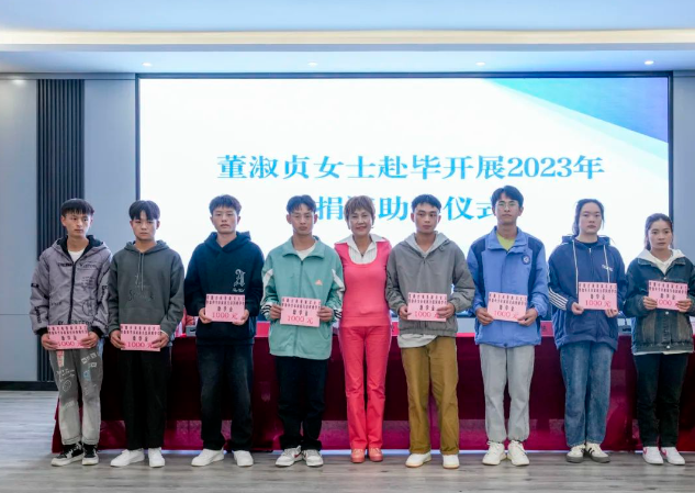 儀式上,董淑貞女士為來自畢節(jié)工業(yè)職業(yè)技術學院、赫章縣、黔西市的受助學生代表發(fā)放助學金,與同學們親切交流,結合自己的經歷,用富有哲理的故事為同學們分享了成長過程中應該如何面對困難和壓力,鼓勵同學們在面對挫折時要滿懷希望、永不放棄、積極行動、持之以恒,并為學生的職業(yè)發(fā)展、人生規(guī)劃提出切實可行的建議。