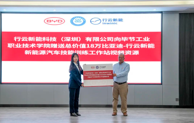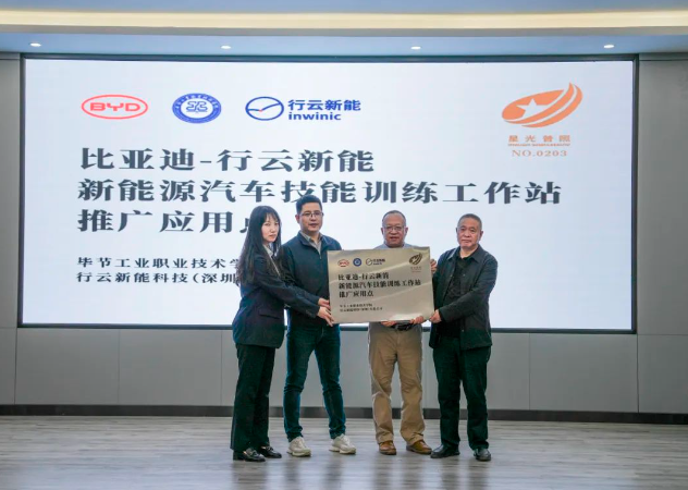 (會(huì)議現(xiàn)場(chǎng)) 會(huì)上,邱國(guó)援介紹了畢節(jié)工業(yè)職業(yè)技術(shù)學(xué)院發(fā)展現(xiàn)狀、辦學(xué)特色、辦學(xué)理念等情況,并指出希望通過發(fā)揮企業(yè)的市場(chǎng)、技術(shù)、設(shè)備等方面優(yōu)勢(shì),共建人才培養(yǎng)基地,為學(xué)院相關(guān)專業(yè)學(xué)生提供優(yōu)質(zhì)技能學(xué)習(xí)條件,進(jìn)一步推動(dòng)校企合作,深化產(chǎn)教融合,實(shí)施人才精準(zhǔn)培養(yǎng)、企業(yè)精準(zhǔn)招聘,促進(jìn)人才鏈與產(chǎn)業(yè)鏈無縫銜接,探索校企合作辦學(xué)模式與運(yùn)行機(jī)制,創(chuàng)新技術(shù)技能人才培養(yǎng)體系,豐富職業(yè)教育內(nèi)涵建設(shè),進(jìn)一步發(fā)揮職業(yè)教育優(yōu)勢(shì)服務(wù)社會(huì)、行業(yè)、企業(yè)。 蔣平指出,希望與畢節(jié)工業(yè)職業(yè)技術(shù)學(xué)院在“產(chǎn)、學(xué)、訓(xùn)”等方面密切合作,創(chuàng)新人才培養(yǎng)模式,共同培養(yǎng)更多高素質(zhì)、高技能的應(yīng)用型人才,促進(jìn)共同發(fā)展。 王克靜指出,將在下一步的合作中提供全產(chǎn)業(yè)鏈人才培養(yǎng)生態(tài)系統(tǒng)服務(wù)整體解決方案,與學(xué)院、比亞迪共同開發(fā)課程與教材,優(yōu)化課程體系,搭建“產(chǎn)、學(xué)、研”服務(wù)平臺(tái),推動(dòng)人才培養(yǎng)模式改革、管理體制機(jī)制創(chuàng)新,助力培養(yǎng)企業(yè)所需的高素質(zhì)技能人才。 (簽約儀式) 基地投入使用后,校企雙方將共同制定人才培養(yǎng)方案,通過企業(yè)工程師入校教學(xué)、教師定崗實(shí)習(xí)培訓(xùn),實(shí)現(xiàn)教師技術(shù)技能和教學(xué)能力雙提升,利用行業(yè)標(biāo)準(zhǔn)和企業(yè)、社會(huì)資源提高專業(yè)建設(shè)標(biāo)準(zhǔn),打造高質(zhì)量行業(yè)人才培養(yǎng)體系,切實(shí)提升我院人才培養(yǎng)質(zhì)量和水平。 (揭牌儀式) (授牌儀式) 會(huì)上,畢節(jié)工業(yè)職業(yè)技術(shù)學(xué)院還與比亞迪汽車股份有限公司、行云新能科技(深圳)有限公司舉行了簽約、揭牌、授牌儀式及新能源技術(shù)技能工作站捐贈(zèng)儀式。 (捐贈(zèng)儀式)