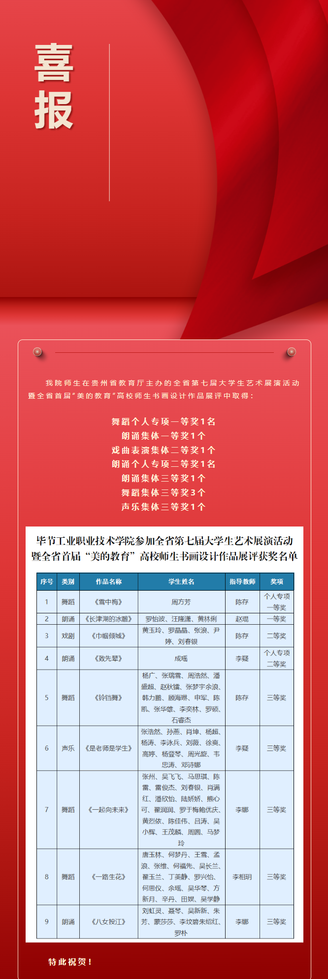 畢節(jié)工業(yè)職業(yè)技術(shù)學(xué)院 喜報(bào)