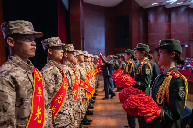 (學(xué)院領(lǐng)導(dǎo)為新兵掛光榮花)