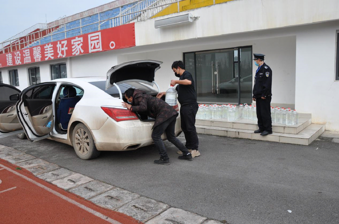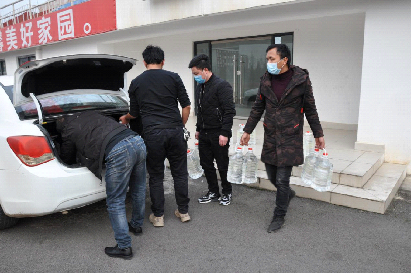 (脫貧攻堅(jiān)幫扶點(diǎn)工作人員到存放處領(lǐng)取學(xué)院捐贈(zèng)醫(yī)用消毒酒精)