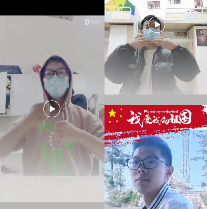 最后,注重培養(yǎng)學(xué)生愛國情懷,樹立正確的價值觀。鼓勵學(xué)生結(jié)合近期疫情防控工作,以及臨近的建國73周年紀(jì)念活動,用自己所看、所思、所想、所悟,采用作畫、手勢舞、與國旗合影的方式表達(dá)自己對抗議一線工作人員的感謝感恩之情,向祖國表白,培養(yǎng)學(xué)生積極向上的精神。