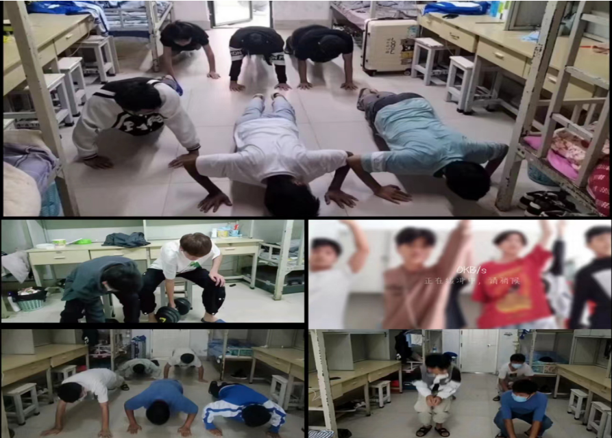 其次,積極引導(dǎo)健身鍛煉。通過樓棟群、班級群等平臺向同學(xué)們推介居家健身操和健身舞蹈,鼓勵學(xué)生從床上下來,從被窩里出來,伸伸腰,踢踢腿,活動活動筋骨,確保良好的身體素質(zhì)。
