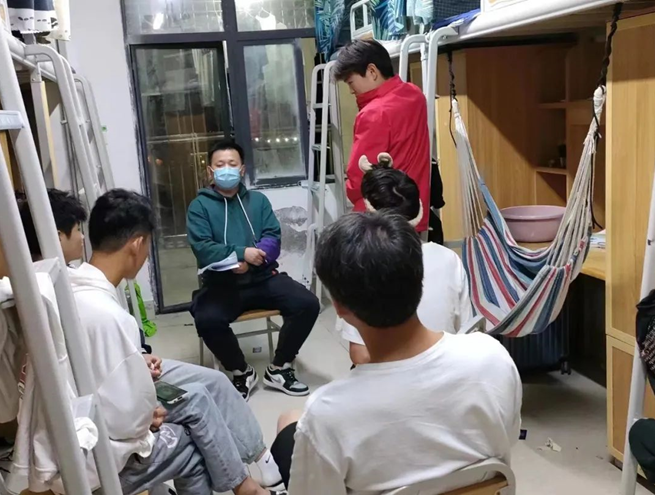 我系聶濤、史曉嵐、何應(yīng)垚、蒙光國等多名老師第一時間趕赴學(xué)院防控一線,組織開展疫情靜默期間各項工作,并帶領(lǐng)我系志愿者同學(xué)用心用情服務(wù)學(xué)生、關(guān)愛學(xué)生。在靜默期間走訪學(xué)生寢室,關(guān)注重點特殊人群、排查心理健康異常情況等,并做好相應(yīng)記錄。