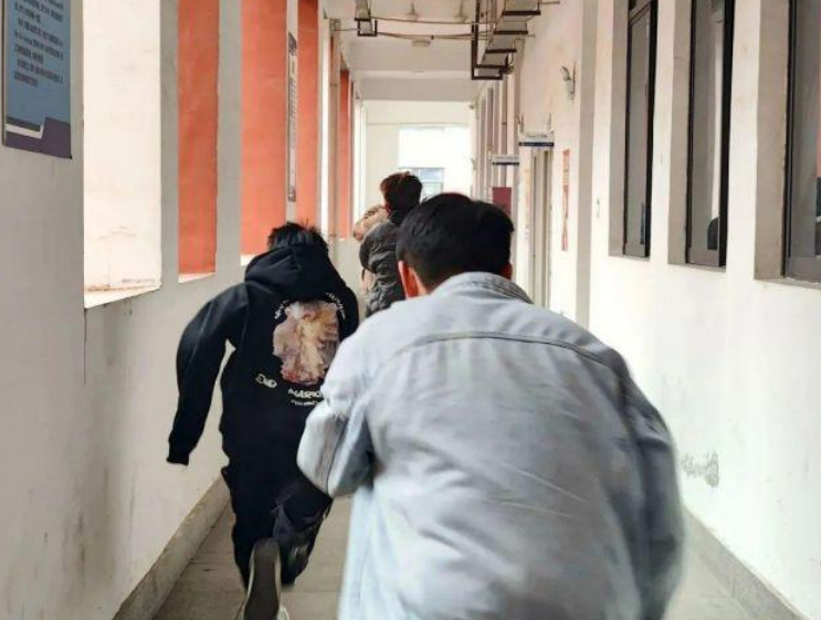 上午11時許,隨著疏散演練警報的響起,我系各演練班級學(xué)生在系部老師及學(xué)生干部的指揮下以最快速度俯身手捂口鼻撤離,按照預(yù)定疏散路線有序到達(dá)安全地帶。整個演練過程快速、安全、有序,達(dá)到預(yù)期效果。