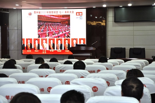 7月1日,在中國(guó)共產(chǎn)黨成立99周年之際,貴州省2020年脫貧攻堅(jiān)“七一”表彰大會(huì)在貴陽(yáng)隆重舉行。學(xué)院領(lǐng)導(dǎo)、各部門全體員工在同心樓九樓會(huì)議室集中觀看全省脫貧攻堅(jiān)“七一”表彰大會(huì)現(xiàn)場(chǎng)直播。