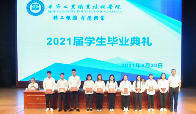 6月30日晚,畢節(jié)工業(yè)職業(yè)技術(shù)學(xué)院2021屆畢業(yè)典禮暨第一屆學(xué)生技能大賽頒獎儀式在會議中心舉行。現(xiàn)場800余名師生共同慶祝畢業(yè)季,一起告別令人難忘的青春歲月。學(xué)院黨委書記李涌出席典禮并真情寄語畢業(yè)生。黨委副書記、院長邱國援主持典禮。黨委副書記付善華及黨委班子成員黃瑛、吳家文、黃河、申開谷、余斌出席典禮。