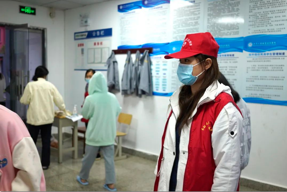 “疫”路奔跑的精靈 廖慧同學(xué)系畢節(jié)工業(yè)職業(yè)技術(shù)學(xué)院信息工程系大數(shù)據(jù)技術(shù)與應(yīng)用專業(yè)學(xué)生,共青團(tuán)員,志愿者。自實(shí)行靜默管理以來(lái),廖慧主動(dòng)申請(qǐng)加入了學(xué)院靜默管理志愿者服務(wù)隊(duì),擔(dān)任宿舍生活區(qū)二期四號(hào)樓的志愿者小組長(zhǎng)。 九月的畢節(jié),秋風(fēng)微涼。廖慧不怕冷,不怕黑,似乎比平時(shí)堅(jiān)強(qiáng)勇敢了許多,每天早晨,天還未亮,她就第一個(gè)起床,穿上志愿者服裝,開始準(zhǔn)備工作。 “在這場(chǎng)沒(méi)有硝煙的戰(zhàn)爭(zhēng)中,我和老師們一起沖鋒陷陣,測(cè)量體溫、統(tǒng)計(jì)信息、匯總數(shù)據(jù)、維持秩序、通知同學(xué)。凌晨?jī)牲c(diǎn),學(xué)校臨時(shí)通知全員核酸檢測(cè),作為志愿者,凌晨一點(diǎn)就得起床做準(zhǔn)備,到各個(gè)寢室敲門提醒同學(xué),在奔跑途中,鞋子都來(lái)不及穿好,又一間一間寢室的統(tǒng)計(jì)學(xué)生在寢人數(shù),為同學(xué)們發(fā)放口罩,提醒她們多穿衣服注意保暖……”“這次參加志愿者服務(wù),讓我收獲了很多感動(dòng),感恩老師們精心的呵護(hù);感恩不遠(yuǎn)千里前來(lái)支援的醫(yī)護(hù)人員;感恩每一個(gè)在冷雨中穿行的身影;感恩一日三餐為我們幫前幫后的食堂工作人員……”,廖慧同學(xué)激動(dòng)地說(shuō)。 “同學(xué),注意間隔距離2米?!薄巴瑢W(xué),請(qǐng)打開貴州健康碼掃描二維碼。”“同學(xué),請(qǐng)有序排隊(duì)”“同學(xué),請(qǐng)戴好口罩,間隔2米”。從宿舍樓到醫(yī)務(wù)室來(lái)回的奔跑,完成核酸工作已是凌晨三點(diǎn)多,天很冷,身體也略顯疲憊,可是廖慧同學(xué)并沒(méi)有停下,馬上又投入到核酸采樣的數(shù)據(jù)核實(shí)之中…… 廖慧同學(xué)的身后,核酸采樣工作還在繼續(xù),同學(xué)們整齊有序地矗立雨中等待,宛如一棵棵接受秋雨洗禮的青松,以昂揚(yáng)的姿態(tài),迎接清晨的曙光。