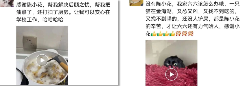 實(shí)行靜默管控以來(lái),機(jī)電工程系老師陳榮雪,每天忙碌于給在校進(jìn)行疫情防控工作的老師們收拾屋子,整理家務(wù)。掃地、澆花、倒垃圾、喂寵物,甚至是熬豬油、洗衣服……把老師們家里的一切打理得井井有條。