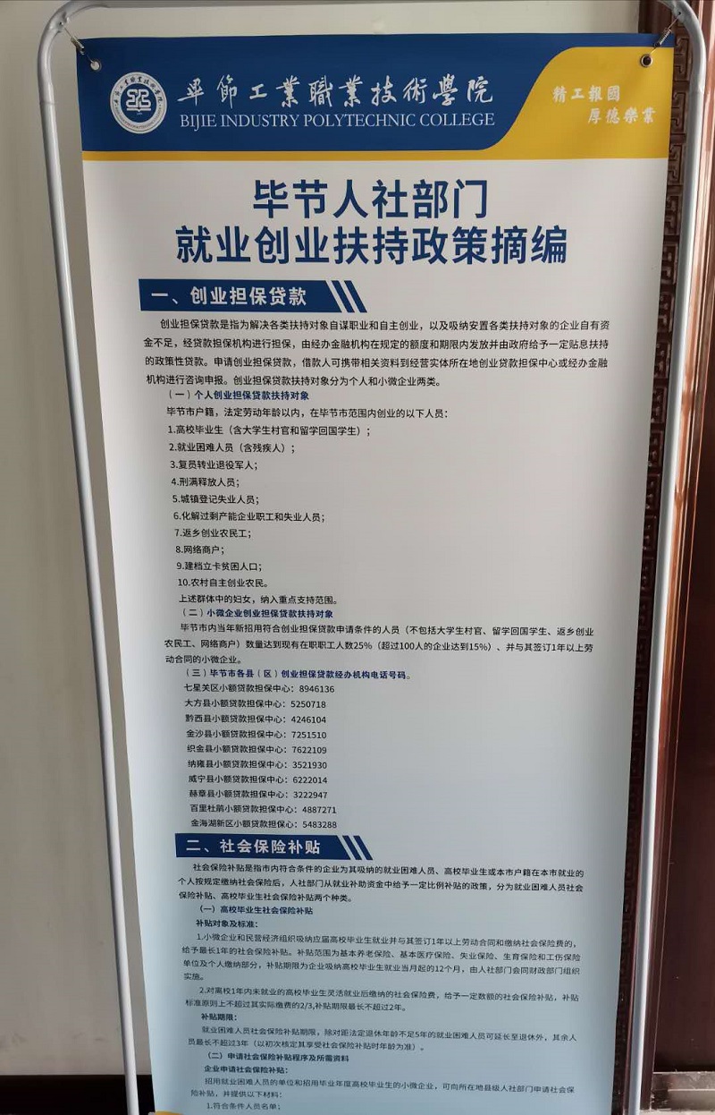 為了助力大學(xué)生創(chuàng)新創(chuàng)業(yè),我院向需要幫助的同學(xué)提供了畢節(jié)人社部門的就業(yè)扶持政策,讓同學(xué)們在創(chuàng)業(yè)就業(yè)的路上少走彎路。