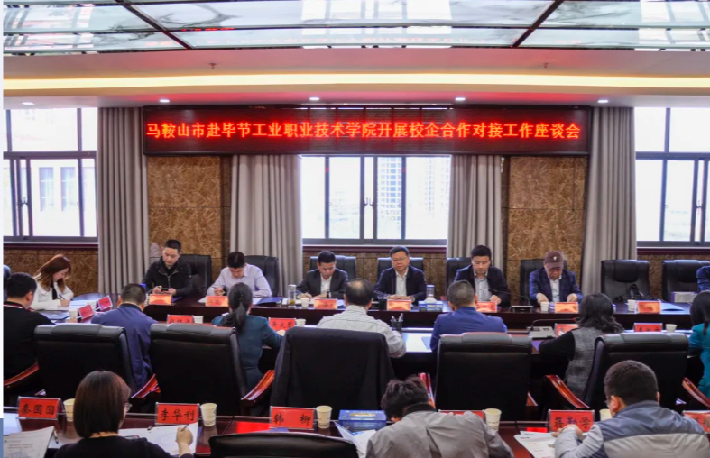 2021年3月31日,馬鞍山市人社局黨組書記、局長(zhǎng)李懷東一行攜當(dāng)?shù)仄髽I(yè)家代表赴我院開(kāi)展校企合作座談會(huì)。畢節(jié)工業(yè)職業(yè)技術(shù)學(xué)院黨委副書記付善華、黨委委員、副院長(zhǎng)黃瑛、黨委委員、副院長(zhǎng)黃文碧及相關(guān)部門負(fù)責(zé)人出席會(huì)議,畢節(jié)市人社局黨組成員、副局長(zhǎng)王孕秋陪同參與活動(dòng)。