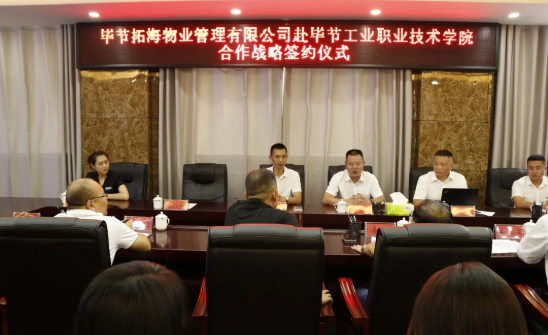 為深入貫徹落實(shí)習(xí)近平總書(shū)記對(duì)技能人才工作重要指示精神,切實(shí)做好新時(shí)代技能人才工作,9月3日,畢節(jié)拓海物業(yè)管理有限公司與畢節(jié)工業(yè)職業(yè)技術(shù)學(xué)院校企合作戰(zhàn)略協(xié)議簽訂儀式在學(xué)院同心樓三樓會(huì)議室舉行。畢節(jié)拓海物業(yè)管理有限公司總經(jīng)理?xiàng)钤聫?qiáng)、常務(wù)副總經(jīng)理邱鋒一行,學(xué)院黨委書(shū)記李涌,黨委副書(shū)記、院長(zhǎng)邱國(guó)援,黨委委員、副院長(zhǎng)吳家文、相關(guān)部門(mén)負(fù)責(zé)人及教師代表出席儀式。簽約儀式由邱國(guó)援主持。