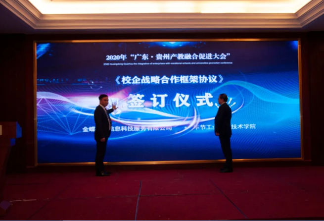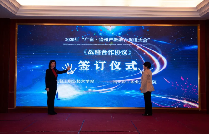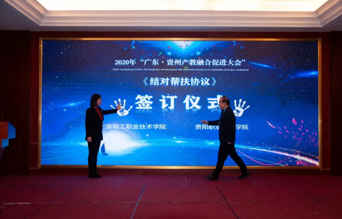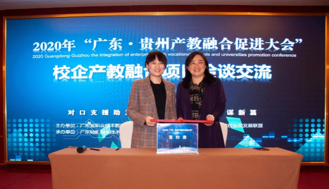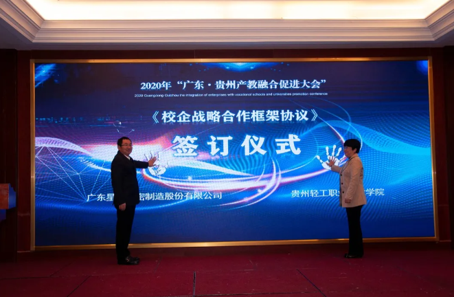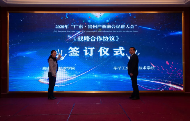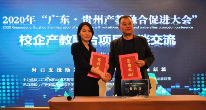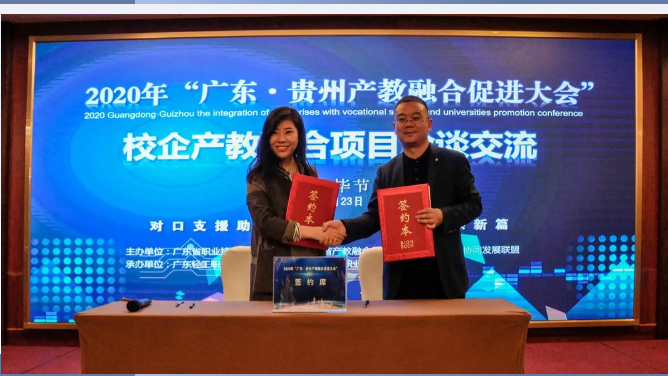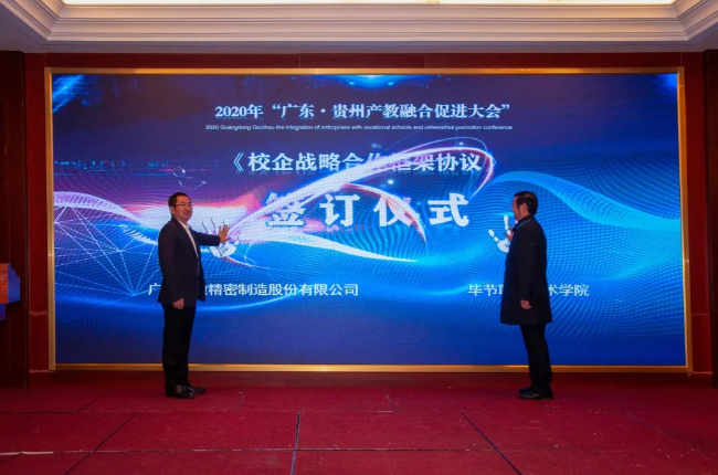 東西部協(xié)作,產(chǎn)教融合助發(fā)展。對(duì)深入推動(dòng)產(chǎn)教融合、校企合作、專業(yè)布局緊扣產(chǎn)業(yè)發(fā)展、教育教學(xué)改革貼近人才培養(yǎng)需求等發(fā)揮了助推作用,將使貴州職業(yè)教育深化產(chǎn)教融合、校企合作打開一個(gè)全新的局面。 貴州省教育廳一級(jí)巡視員鞠洪在會(huì)上表示,隨著中央、省一系列政策、措施的出臺(tái)實(shí)施,產(chǎn)教融合發(fā)展將迎來更好的發(fā)展機(jī)遇。廣東·貴州產(chǎn)教融合促進(jìn)大會(huì)的召開,為我省各職業(yè)院校與廣東省的各行各業(yè)優(yōu)質(zhì)企業(yè)和職業(yè)院校交流溝通搭建了一個(gè)廣闊的平臺(tái)。期待通過這個(gè)平臺(tái),粵黔兩地能更大范圍、更寬領(lǐng)域、更深層次開展合作,實(shí)現(xiàn)廣東市場(chǎng)+貴州產(chǎn)品,廣東研發(fā)+貴州制造的融合發(fā)展。 廣東輕工職業(yè)技術(shù)學(xué)院黨委書記杜安國(guó)表示,落實(shí)廣黔結(jié)對(duì)幫扶舉措,發(fā)揮企業(yè)與教育的互促力量,在廣東·貴州產(chǎn)教融合促進(jìn)大會(huì)的廣闊平臺(tái)上,為校企合作牽線搭橋,共同建立長(zhǎng)期緊密的合作關(guān)系,促進(jìn)職業(yè)教育高質(zhì)量發(fā)展,實(shí)現(xiàn)職教幫扶促發(fā)展,產(chǎn)教融合謀新篇。 發(fā)揮自身優(yōu)勢(shì),助力合作共贏。畢節(jié)市人民政府副市長(zhǎng)胡愛斌在會(huì)中坦言,落實(shí)東西部扶貧協(xié)作,畢節(jié)要盡其資源,提升兩省兩市的產(chǎn)教契合度,圍繞自身的優(yōu)勢(shì),加強(qiáng)廣東企業(yè)和貴州教育的結(jié)合優(yōu)勢(shì),為畢節(jié)打造更多的“畢工強(qiáng)將”、奮力人才! 會(huì)上,廣東省向貴州職業(yè)院校捐贈(zèng)阿里云智慧校園3.0系統(tǒng),廣州市億科計(jì)算機(jī)公司向畢節(jié)工業(yè)職業(yè)技術(shù)學(xué)院捐贈(zèng)智慧黨建系統(tǒng);相關(guān)企業(yè)與院校簽訂人才專業(yè)培養(yǎng)、訂單班、校企戰(zhàn)略合作、產(chǎn)教融合項(xiàng)目20余項(xiàng)。廣東星徽精密制造股份有限公司代表參會(huì)企業(yè)進(jìn)行發(fā)言,10余家企業(yè)進(jìn)行了產(chǎn)教融合案例分享。 會(huì)中,許多學(xué)校和企業(yè)單位都精彩紛呈的展示了“自家”的優(yōu)勢(shì)及未來發(fā)展。很多校企單位在行程中便互相洽談、簽約,這些成功的簽約對(duì)產(chǎn)教融合,校企合作有了更深的意義,推進(jìn)了產(chǎn)教融合,校企合作,校校合作的進(jìn)程,引領(lǐng)時(shí)代的新篇章。 廣東?貴州產(chǎn)教融合促進(jìn)大會(huì)在畢節(jié)召開,既是山與海的對(duì)話,更是心與心的交流。職業(yè)教育的目標(biāo)是培養(yǎng)技能型的人才,深化走產(chǎn)教融合,校企合作之路,加強(qiáng)產(chǎn)教融合,校企合作,達(dá)到互惠互利,合作共贏的優(yōu)勢(shì),共同培育新時(shí)代高技能人才。