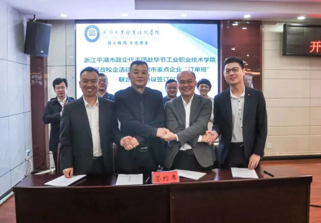 ▲浙江省平湖市重點企業(yè)“訂單班”聯(lián)合簽約